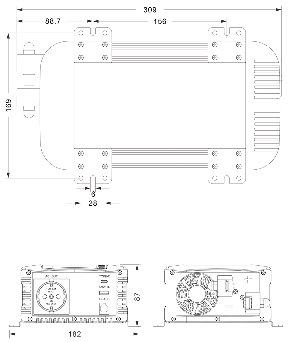 Bản vẽ cơ khí:(309x182x87mm)