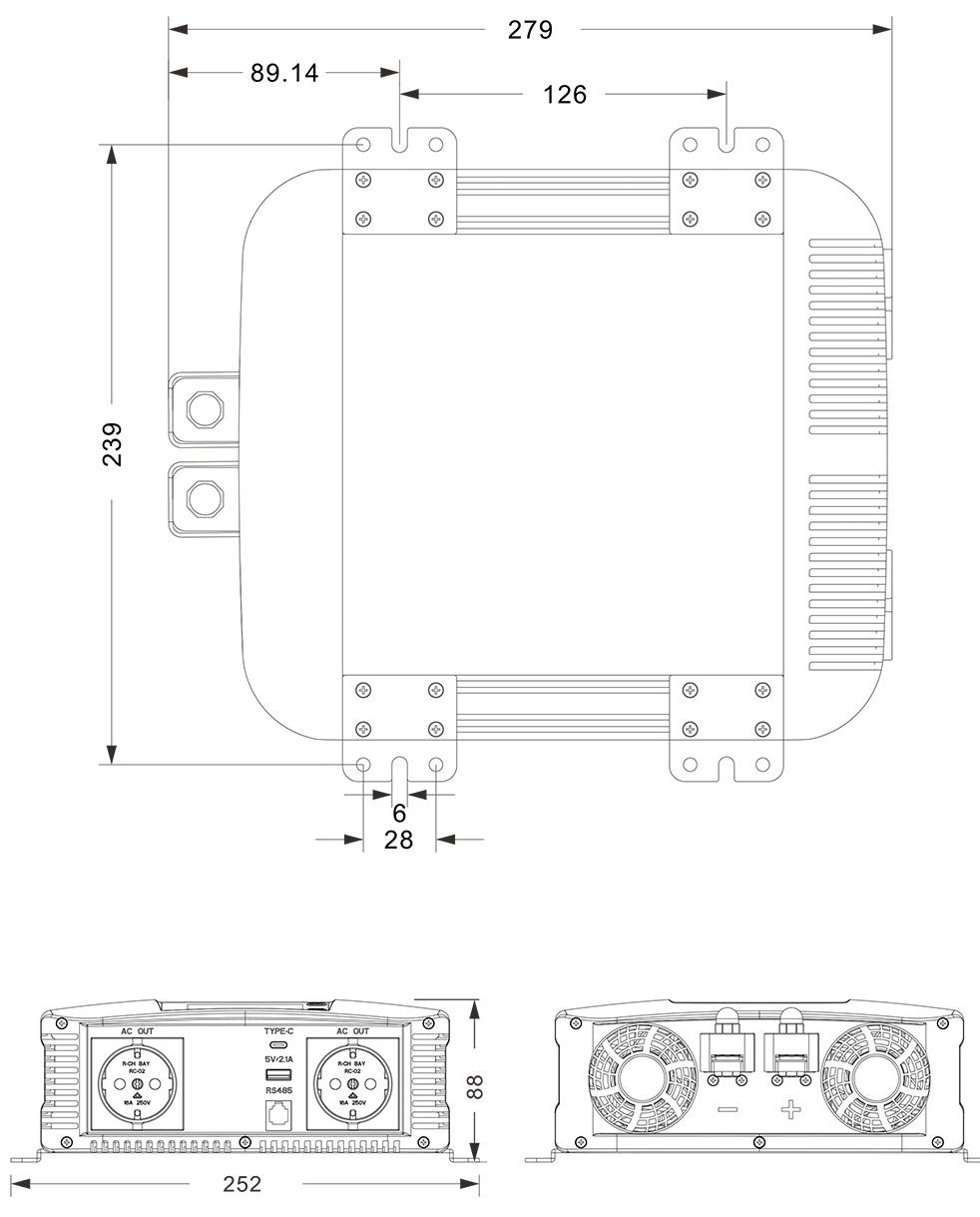 Bản vẽ cơ khí:(279x252x88mm)