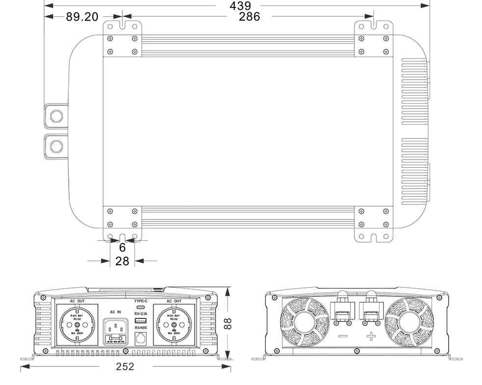 • Biến tần sóng sin tinh khiết 2500w có bộ sạc HK2500PCBiến tần sóng sin tinh khiết 2500w có bộ sạc HK2500PC