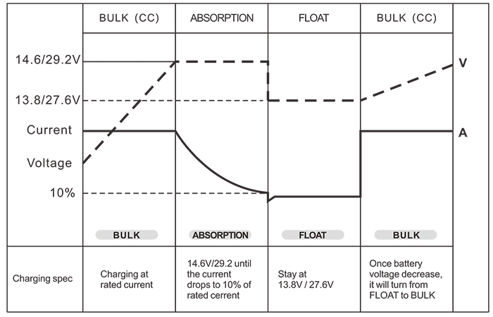 Kiểm soát pin (Bộ sạc pin 3 giai đoạn) Số lượng lớn / Hấp thụ / Nổi