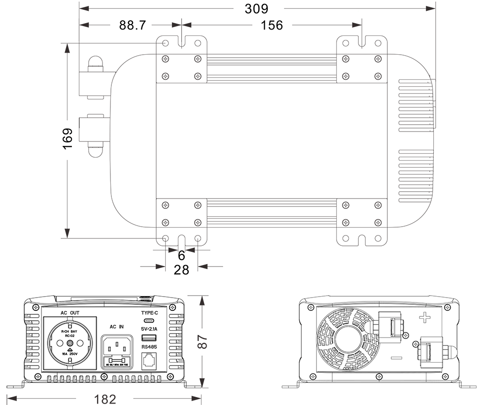 Bản vẽ cơ khí:(309x182x87mm)