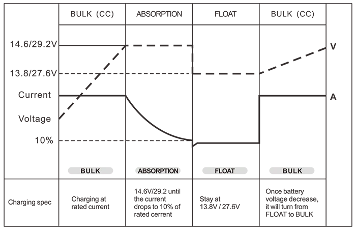Kiểm soát pin (Bộ sạc pin 3 giai đoạn) Số lượng lớn / Hấp thụ / Nổi